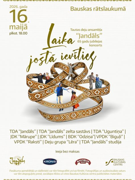 16. maijā plkst. 18.00 Bauskas rātslaukumā notiks Bauskas Kultūras centra tautas deju ansambļa (TDA) “Jandāls” 65 ...