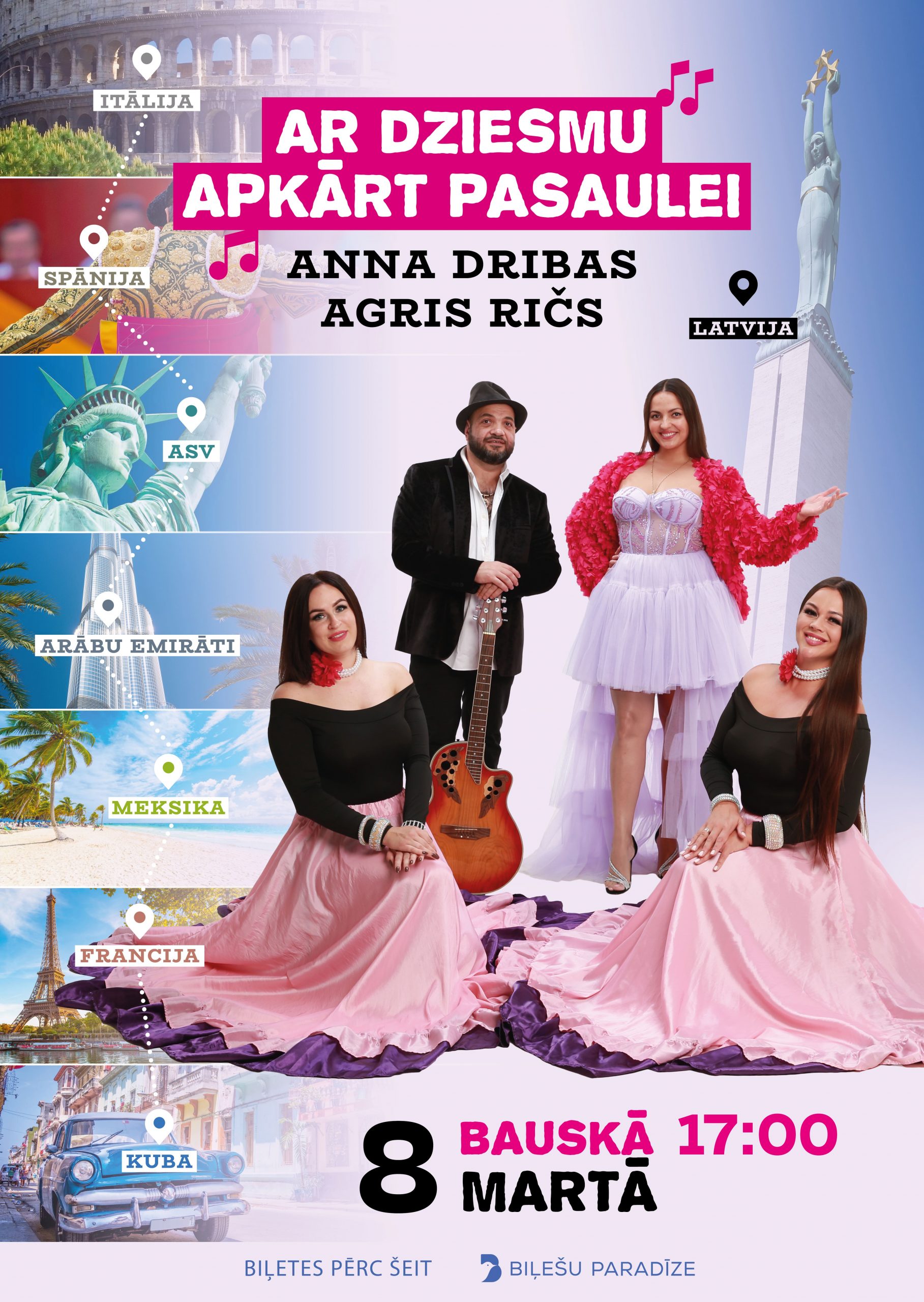 Dziedātāji Anna Dribas un Agris Ričs aicina 8. martā, Starptautiskajā sieviešu dienā, plkst. 17.00 Bauskas Kultūras centrā uz koncertu “Ar dziesmu apkārt pasaulei”