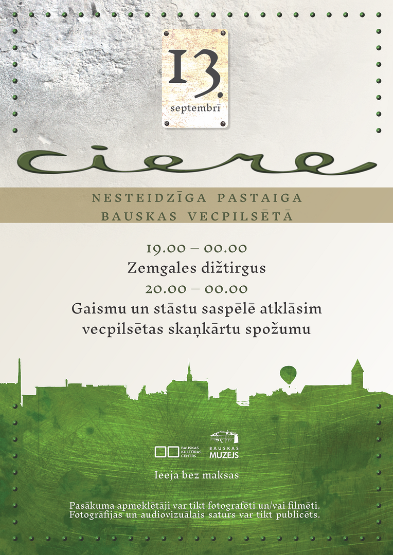 Vēršam uzmanību, ka pasākuma apmeklētāji var tikt fotografēti un/vai filmēti. Fotogrāfijas un audiovizuālais saturs var tikt atspoguļots presē, sociālajos tīklos un publicitātes materiālos.