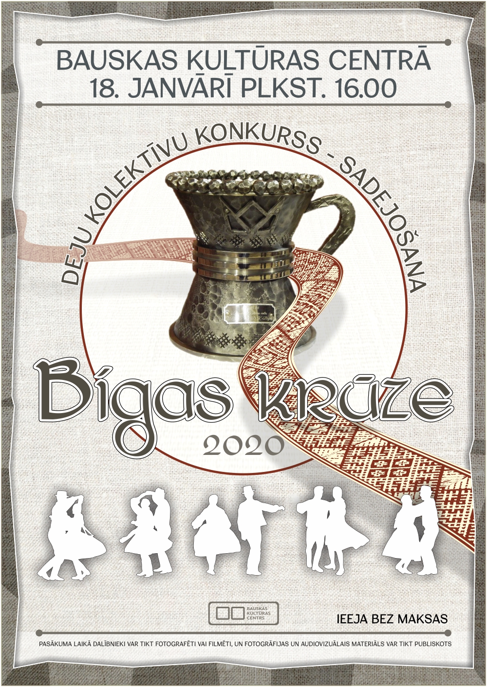 Konkurss “Bigas krūze” 2020-01-18 16:00 - 18:00 Bauskas Kultūras centrs Twitter Facebook Google+ Latvijas vidējas paaudzes deju kolektīvu konkurss “Bigas krūze” Konkurss