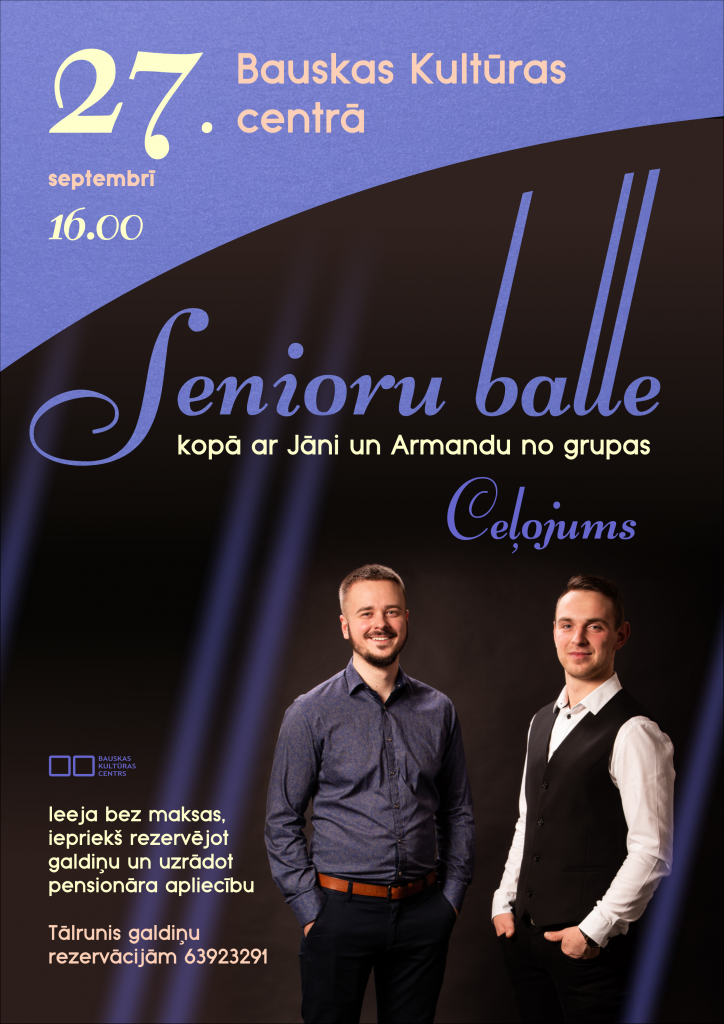 Ik septembri pilsētas seniori satiekas Bauskas Kultūras centra rudens ballē. Šogad kopīgā sanākšana notiks 27. septembrī plkst. 16.00. Par pēcpusdienas atmosfēru – smiekliem, dziesmām un dejām – gādās Jānis un Armands no grupas “Ceļojums”.