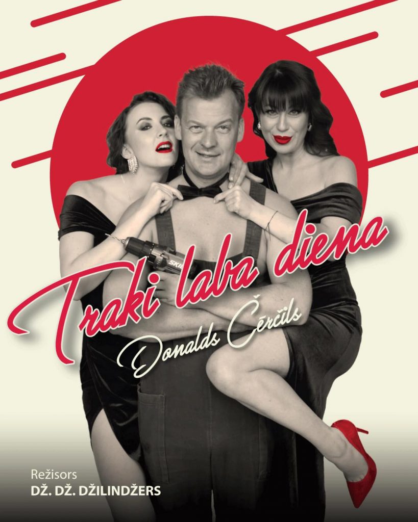No 15. oktobra pa dažādām Latvijas pilsētām izbraukuma tūri uzsāks britu dramaturga Donalda Čērčila skatuves hits, izrāde “Traki laba diena” režisora Dž.Dž. Džilindžera asprātīgajā iestudējumā. Tā ir komēdija, kas “uzspridzina” pieklājības čaulu un “izkrata” no mums visu, ko ikdienā slēpjam. Šī ir viena no visvairāk iestudētajām Čērčila lugām, ko jau vairākas desmitgades ir iecienījuši teātri visā pasaulē. “Traki laba diena” ielūkojas Anglijas augstākās sabiedrības aizkulisēs. Tur, kur valda šķietama pieklājība un izsmalcinātība, patiesībā gruzd spriedze, greizsirdība un vēlme pēc taisnības vai vismaz kārtīgas atriebības. Negaidīti pavērsieni, vāji maskētas emocijas un nekautrīgas kaislības – tieši tāda izvērtīsies kāda vasaras pēcpusdiena, kad visi varoņi jauši vai nejauši satiksies Londonas dzīvoklī.