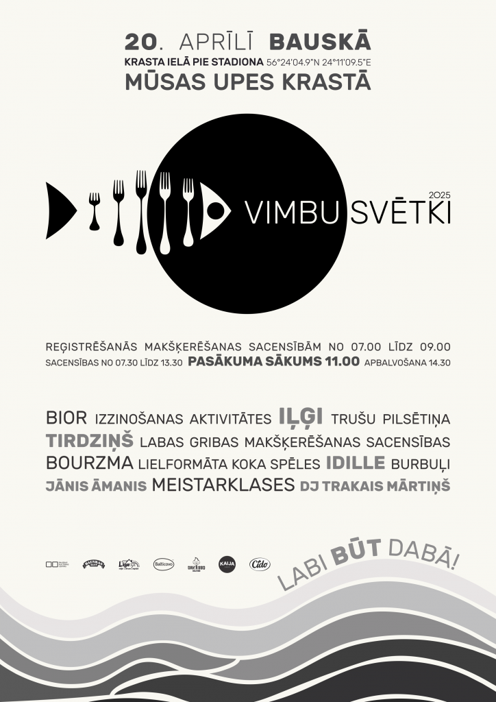 Bauska ir viena no vimbu makšķerēšanas galvaspilsētām, tāpēc 20. aprīlī Mūsas upes labajā krastā (Krasta iela pie Bauskas stadiona) notiks jau septītie “Vimbu svētki”, kas ik gadu upes malā pulcē Labas gribas makšķerēšanas sacensību dalībniekus, dabas draugus un pavasara svinētājus no visas Latvijas. Šoreiz svētkus pavadīs sauklis “Labi būt dabā!”, kas mudinās ne tikai baudīt dabas dāsnumu, bet arī apzināties, kā dabas resursus un veltes izmantot pēc iespējas saudzīgāk. Svētku skatuves programmu šogad veidos grupas “Iļģi” un “Idille”, DJ Trakais Mārtiņš un runasvīrs Jānis Āmanis. Piedāvājam apkopojošu informāciju par svētku norisi un programmu.