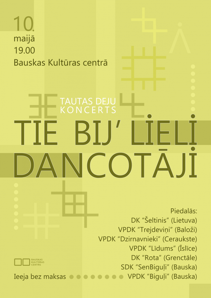 10. maijā plkst. 19.00 Bauskas Kultūras centrā notiks vidējās paaudzes deju kolektīva “Biguļi” sadraudzības koncerts “Tie bij’ lieli dancotāji”.