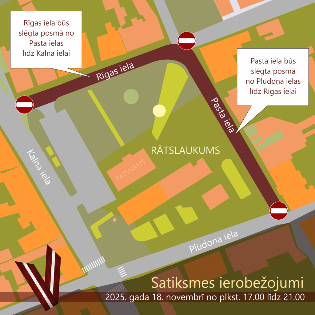 Koncerta dienā laika posmā no plkst. 17.00 līdz plkst. 21.00 vecpilsētas teritorijā tiks noteikti satiksmes ierobežojumi. Rīgas iela būs slēgta posmā no Pasta ielas līdz Kalna ielai. Pasta iela būs slēgta posmā no Plūdoņa ielas līdz Rīgas ielai.